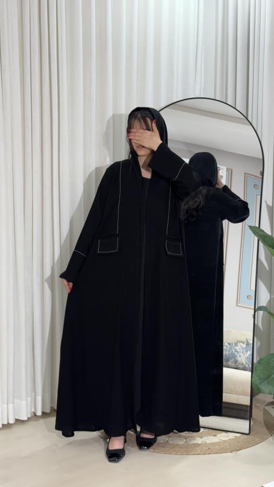 تختارين عباية قماش كريب من بنت السلطان لأنها خامتها كريب طايح فاخر تحسسك بالراحة والفخامة، والتطريز الأبيض يعطيها لمسة أنيقة تفرق عن العبايات العادية. الجيوب مخفية عشان تحافظ على شكلها الأنيق، والطرحة المطرزة تزيدها جمال. وكمان تتفصل على مقاسك بالضبط، يعني تضمنين تناسبها مع جسمك بالضبط.