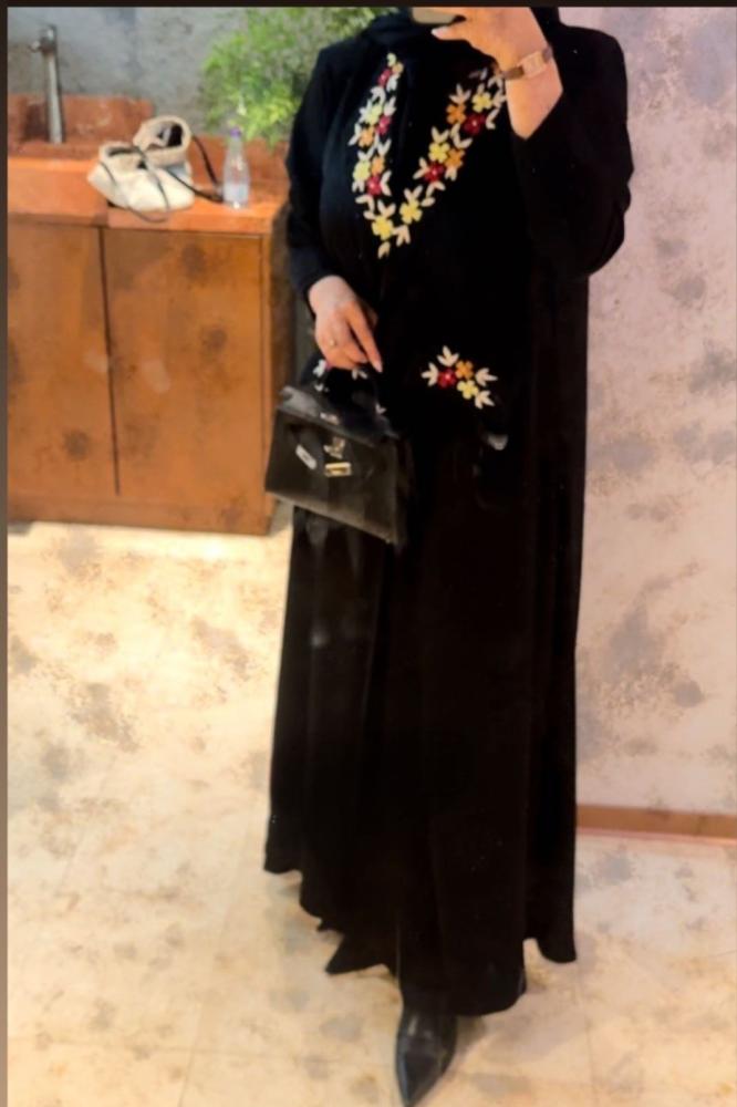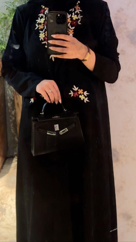 طرحة باللون الاسود مع تطريز في مثلث الطرحة